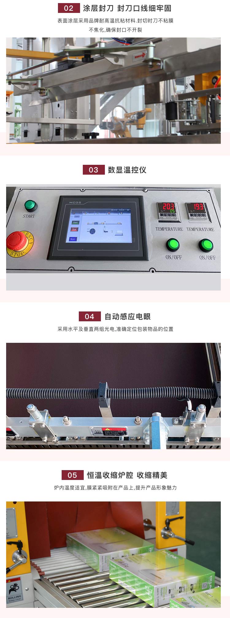 優勢:耐用零部件,封切收縮一步到位,經濟省錢