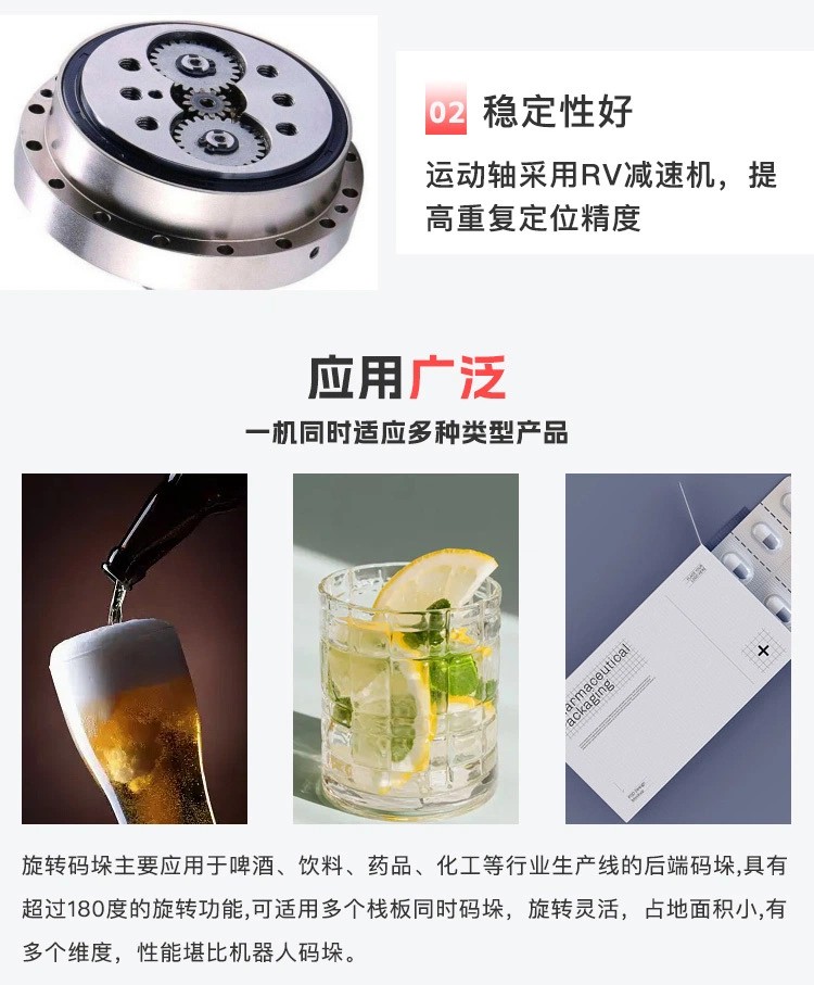 介紹:立柱碼垛機是智能包裝設備,主要由立柱結構、夾具系統、控制系統、傳感器、控制面板和裝置構成。它能自動抓取、碼垛和放置產品,提高生產效率和包裝質量,節省人力成本,是現代化生產線的重要設備。