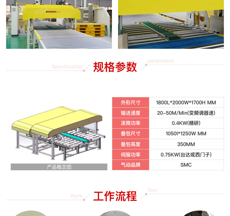介紹:疊包機的功能是當屏幕上打開堆疊功能時,可將原來的單包進料切換為每兩包同時進入抓取位,以減少機器人的動作次數,進而提高碼垛的效率。 產品別稱:紙板疊包系統、紙板疊包機、疊包機、自動疊包機